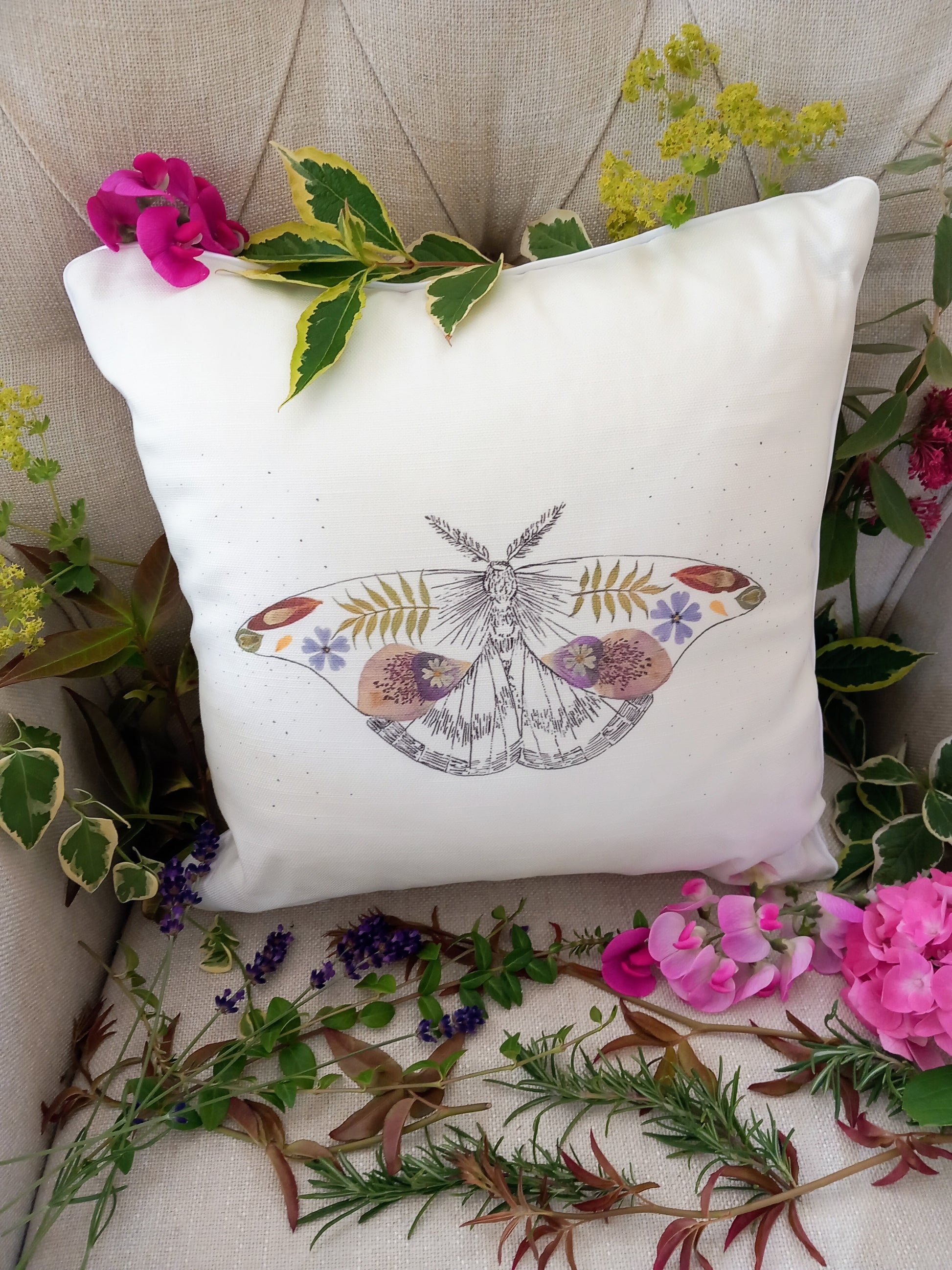 -Cushions- 'Floral Moth' (Double-Sided Print)